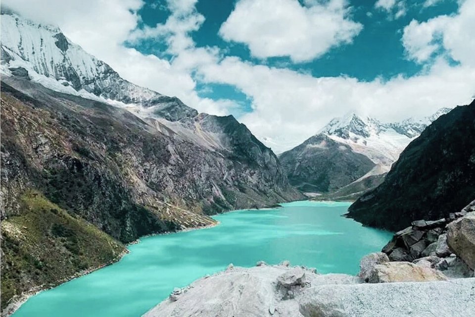 We reach the ultimate vantage point to witness the "Paramount" peak (Artesonraju) and the Huandoy massifs. Your guide will assist you through the rocky sections and help capture the perfect photos, prioritizing your safety and well-being at all times.
